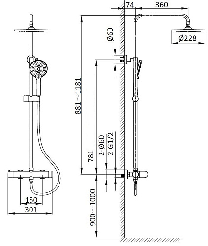 Vincea Rondo VSFS-1R0MB Душевая стойка
