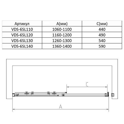 Vincea Slim 8mm VDS-6SL140CL Душевая дверь