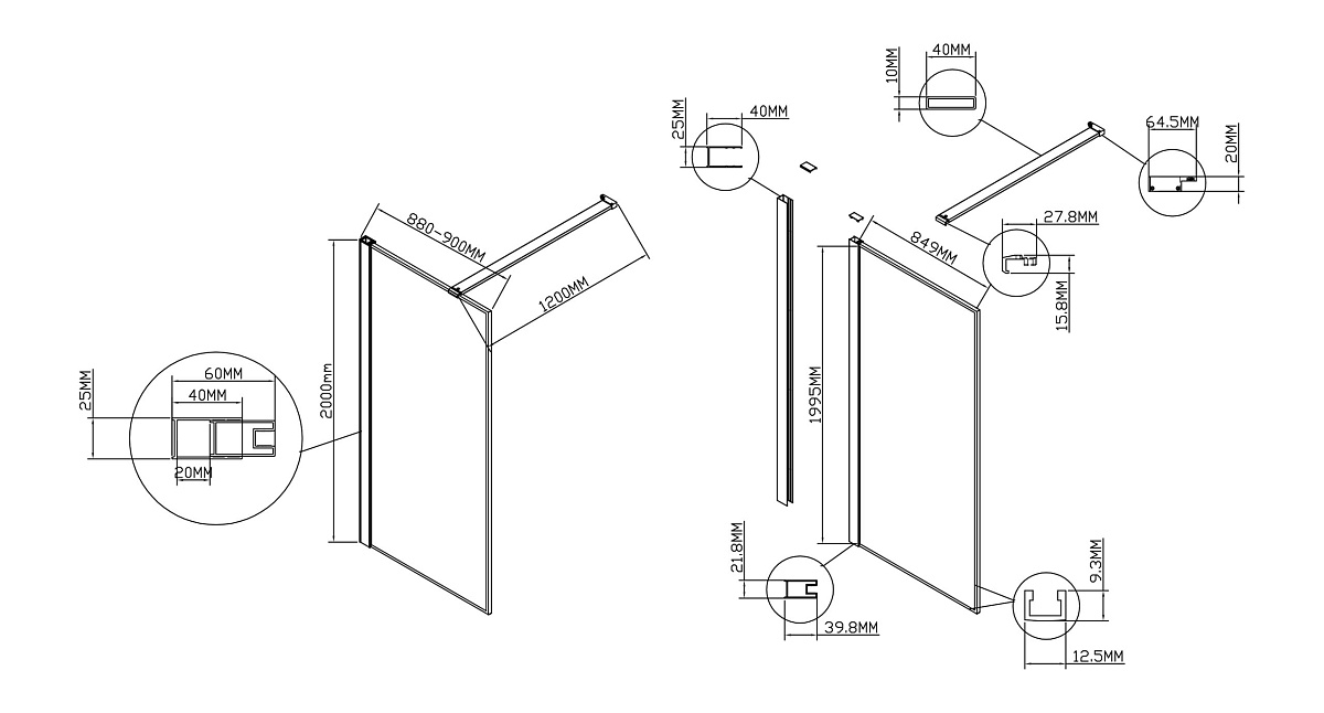 Vincea Walk in HS VSW-1HS900CLB Душевая перегородка