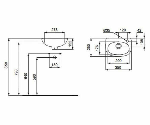 Ideal Standard W407901 Ecco/Eurovit Раковина подвесная 35х25 см, отверстие под смеситель справа, White (белый)