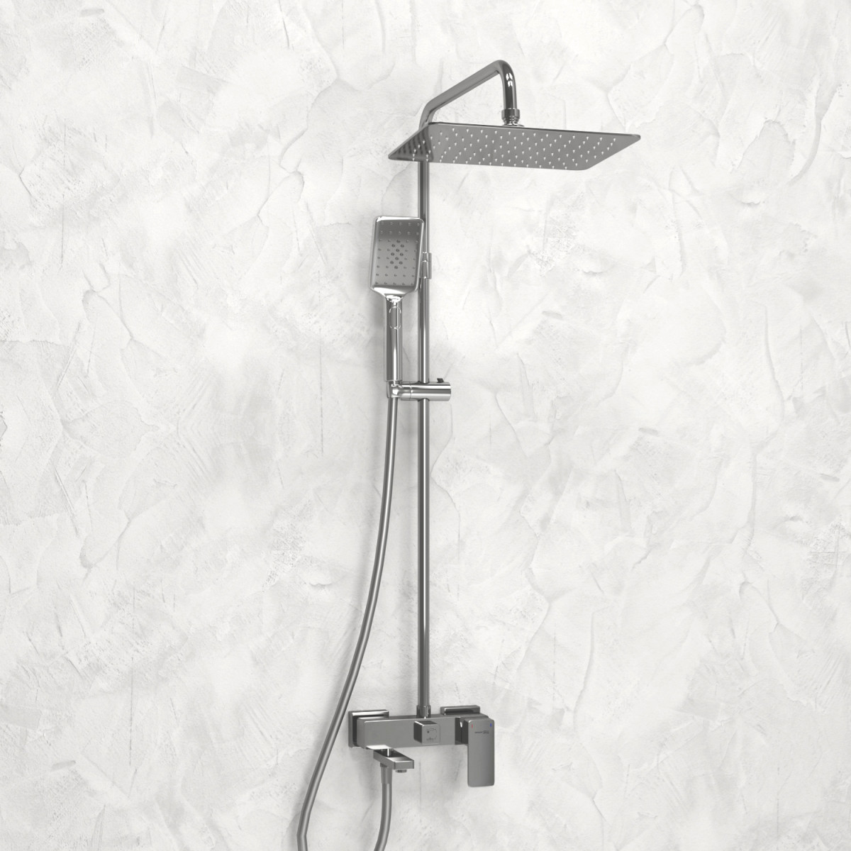 Входит в комплект: - Душевая насадка 300х200 мм, 112 форсунок, нержавеющая сталь; - Стойка для душа, ? 22 мм регулируемая по высоте; - Лейка 3-функциональная с системой защиты от известковых отложений; - Шланг ПВХ 1500 мм, подключение к лейке; - Смеситель для ванны с коротким изливом; - Керамический картридж 35мм, Sedal (Испания); - Встроенный пластиковый аэратор Neoperl HONEYCOMB (Германия) с регулируемым углом наклона струи; - Керамический поворотный переключатель; - Набор для монтажа. Материал: латунь, ABS-пластик, нержавеющая сталь. Хромоникелевое покрытие.