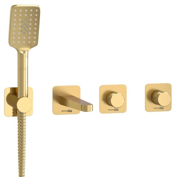 Оснащение Смеситель для ванны и душа Schunter 8251, Переключатель на 2 выхода А306, Подключение шланга A285, Лейка 3-функциональная A201, Шланг для душа 1500 мм A194, Настенный излив для ванны A308