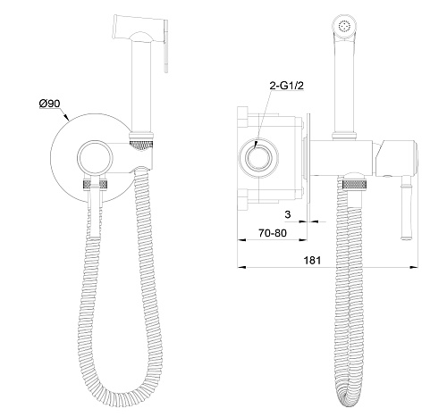 Оснащение Смеситель / Душевой шланг / Держатель для душа / Лейка гигиенического душа / Монтажный комплект