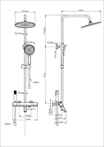 Оснащение Смеситель / Душевой шланг/ Держатель для душа / Душевая штанга / Верхний душ / Душевая лейка / Эксцентрики / Монтажный комплект